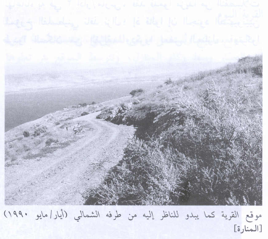 The village was located on a hilltop overlooking Lake Tiberias in lower eastern Galilee. Northeast of it, a steep slope descended toward the edge of the lake. To the south, there was a moderately sloping plain. AI-Manara's twin village of Nasir aI-Din lay about 3 km to the northwest. A secondary road linked the village to a highway in the northwest that led to Tiberias. The name al-Manara, which means "lighthouse" in Arabic, may have been derived from the name of Kefar Menori, which was located on the same spot during the Roman period. It was known as Menan by the Crusaders. The village site was a small, square area in which houses were crowded closely together. Its residents were Muslims. The village was close to several springs, including a group of hot springs which lay 1.5 km to the northeast, on the shores of Lake Tiberias. The people of al-Manara worked in agriculture and livestock breeding. Their main agricultural products were grain, watermelons, and tobacco. In 1944/45 a total of 4,172 dunums of the land of the two villages was allocated to cereals. The village was an archaeological site that contained the ruins of houses. Archaeological remains were also found at Khirbat al-Manara (200241) and Khirbat Sarjuna (198241).