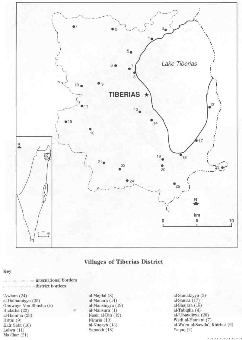 Map Of The Destoryed & Depopulated Villages In Tiberias District |