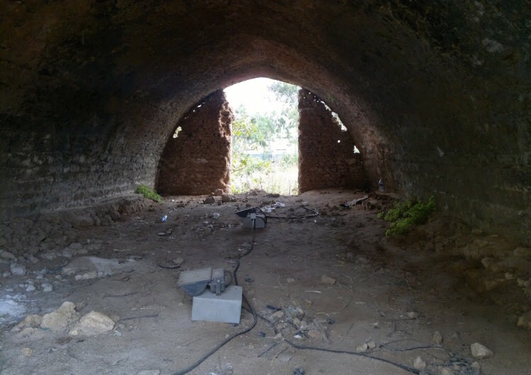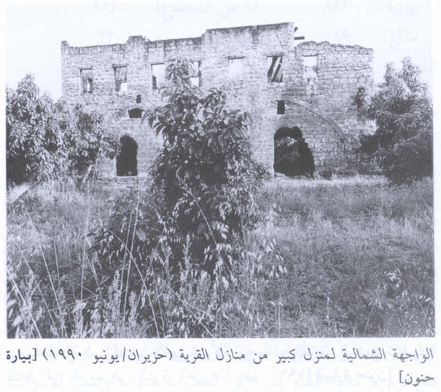 One large, two-storey, deserted house still stands on the site, although some sections of it have been destroyed. Each storey consists of three large rooms. There is an artificial pond near the western side of the house, and a wall runs from the house to the west and east. The rooms on the lower floor are used to store agricultural implements. The house is bordered by avocado orchards on the north and west, and by citrus on the southern side. On the eastern edge of the site is a group of dilapidated houses.