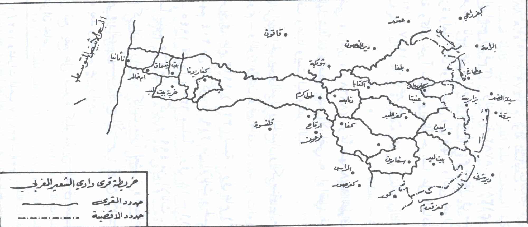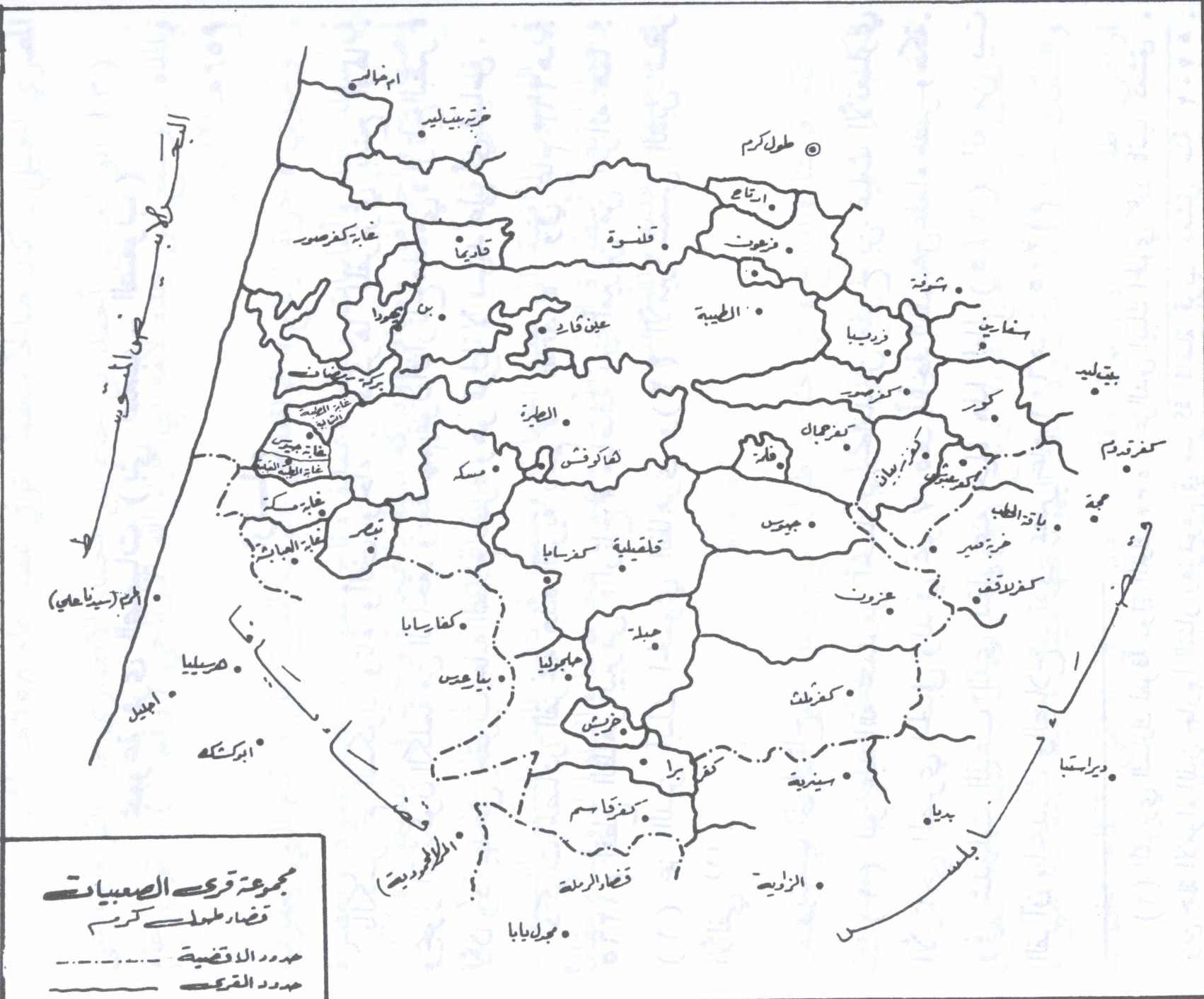 خرائط فلسطين: خارطة قضاء طولكرم توضح القرى (المهجرة والمدمرة) ومسار الاودية والانهر في القضاء |