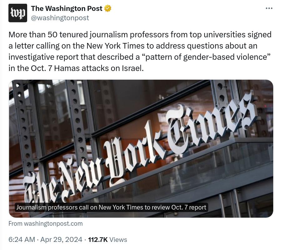 Just in case you doubt our presentation, here are fifty top Ivy League professors in journalism asking the paper of record, the NY Times, to retract its farce of a hoax story. Just in case you think we are kidding, the NY Times' Daily Podcast refused to air its recorded episode on the subject because it had so many holes, and they were worried that they will tarnish their reputation (as it did happen 8 years earlier with their infamous The Caliphate awared winning podcast). Here is a hint: censorship runs deep at the paper of record; nothing will be printed unless it will be good for NYTimes' bottom line: