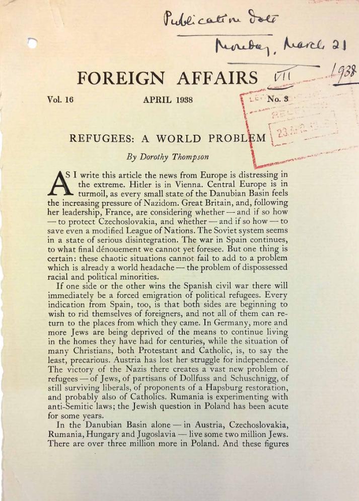 Thompson was also one of the first Western journalists to meet with emissaries from the Polish underground who brought reports of the extermination of Jews. She publicized their testimonies in American outlets, giving the public some of its earliest glimpses of the Holocaust as it unfolded (Thesis: UVM, 2009, p. 88-92).