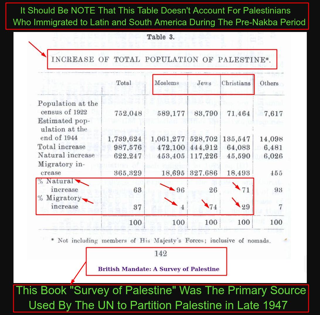 Survey of Palestine Table 3: Population Increase, Natural Growth Vs. Immigration