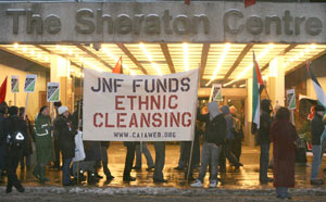Reena Katz, a member of the Coalition Against Israeli Apartheid, told the crowd, "The JNF is fundraising to support the ethnic cleansing of Palestinian villages in the West Bank" ؟ actions that our tax money should not be supporting.
