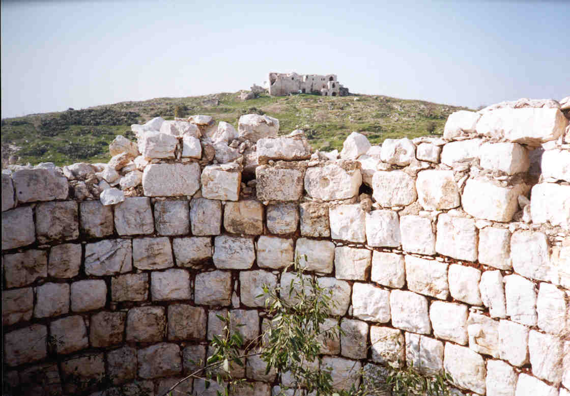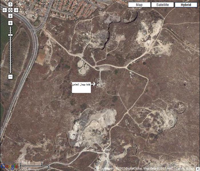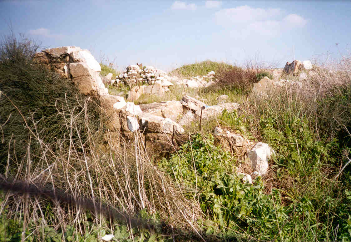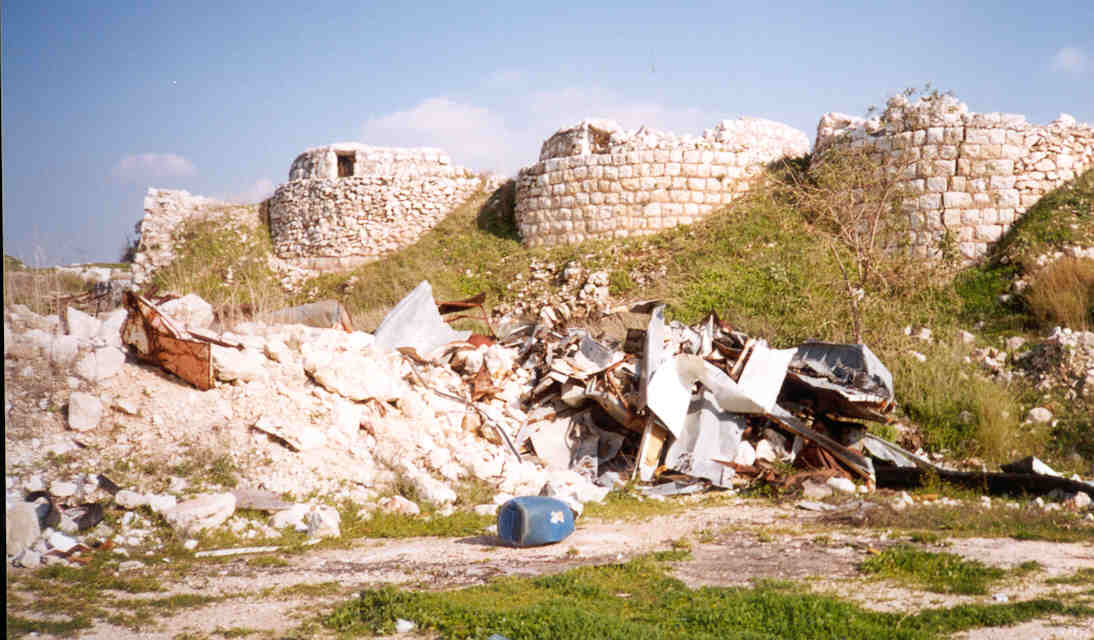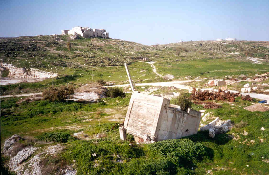 صورة لقرية مجدل يابا (الصادق) - فلسطين: : منظر عام للقلعة وتظهر في الصورة اثر البيوت المدمرة،2002 أنقر الصورة للمزيد من المعلومات عن البلدة