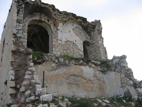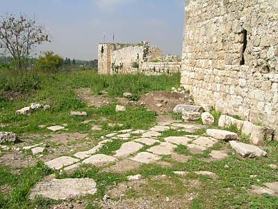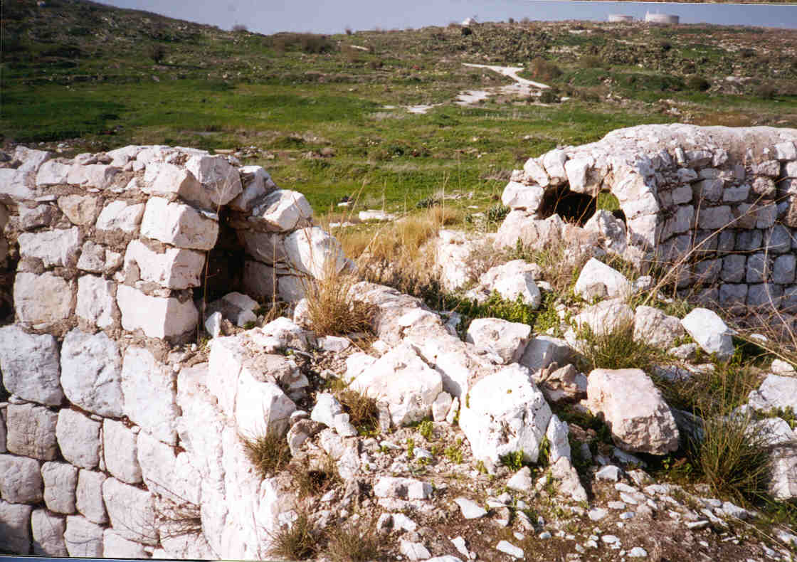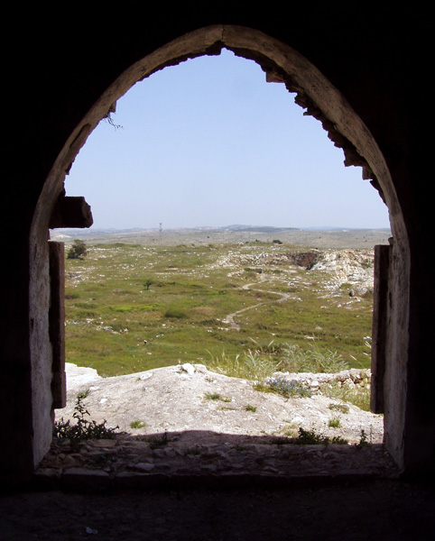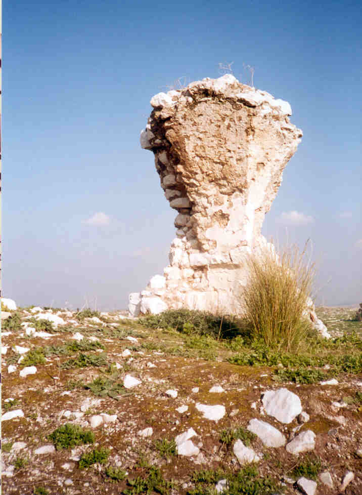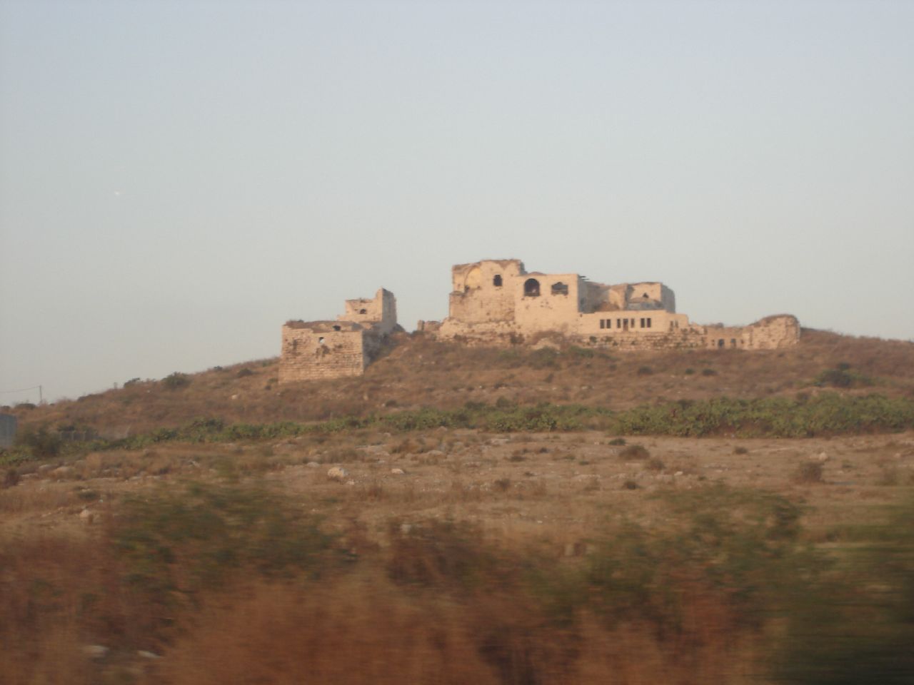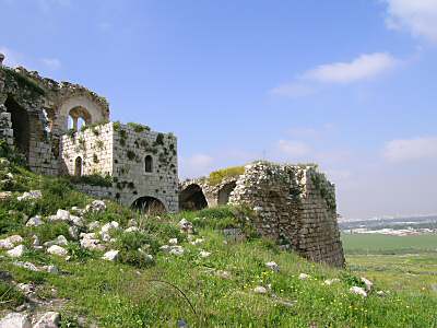 صورة لقرية مجدل يابا (الصادق) - فلسطين: : منظر عام للقلعة وتظهر في الصورة اثر البيوت المدمرة،2002 أنقر الصورة للمزيد من المعلومات عن البلدة
