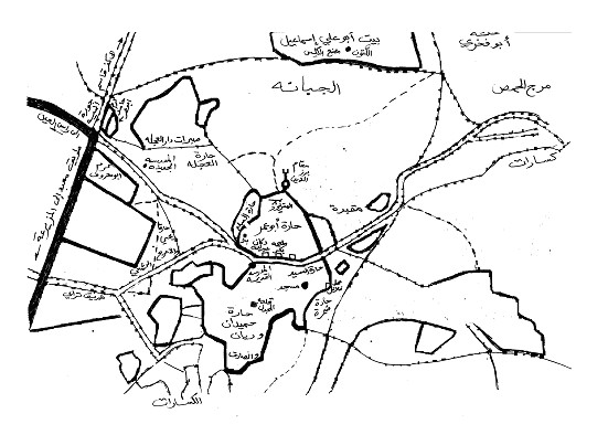 خرائط ذات صلة خارطة توضح حدود اراضي البلدة وما يحيطها
