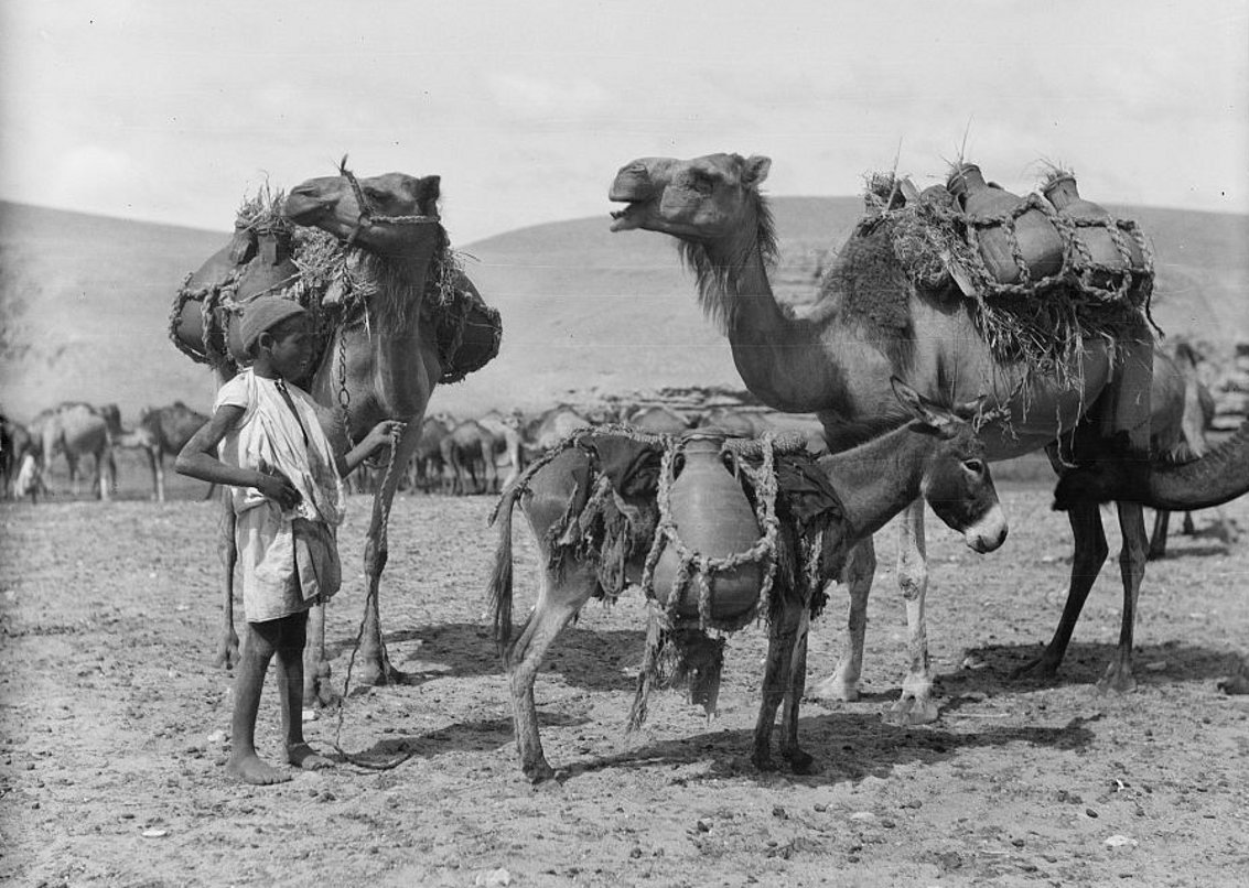 Posted by Moamin Shadid - Wadi al-Hawarith - وادي الحوارث, Tulkarm: قافلة جمال لنقل البطيخ بدايات القرن العشرين