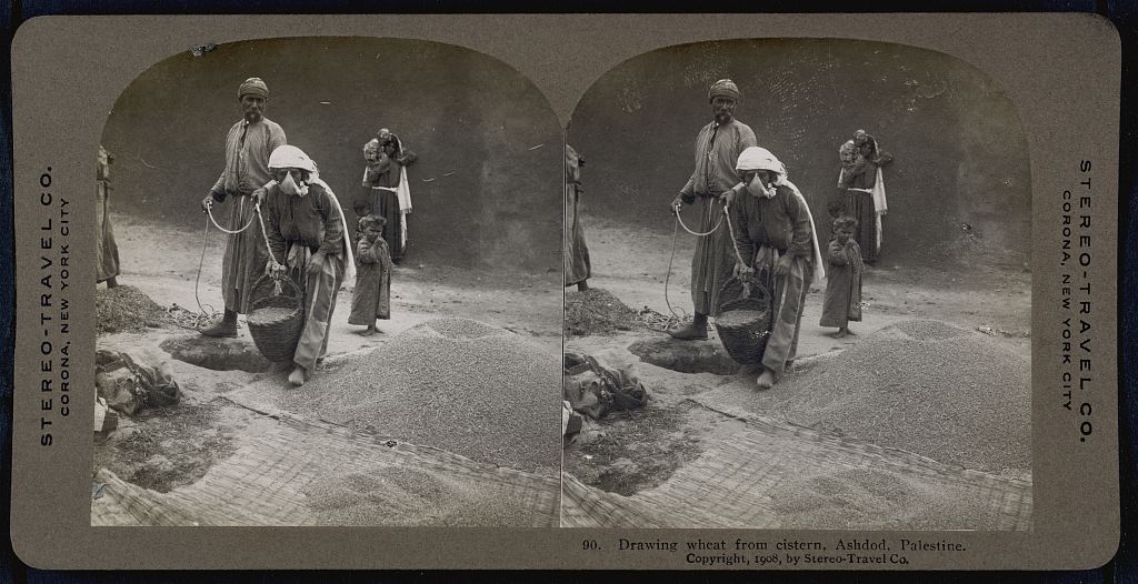 Posted by Rajae mahmoud - Haifa - حيفا: HAIFA - Wheat harvest displayed in market, 1900 - Gertrude Bell Archive