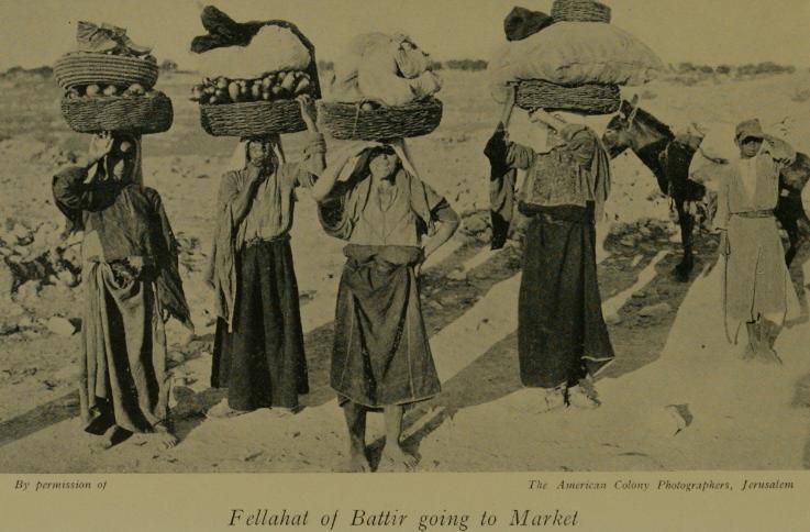 Posted by Haitsu - صانعة فخار من إحدى قرى قضاء الخليل تحمل بعض الفخاريات لبيعها في السوق عشرينيات القرن العشرين..