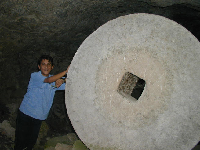 - Saris - ساريس, Jerusalem: inside the house-cave in Saris with mill stone inside