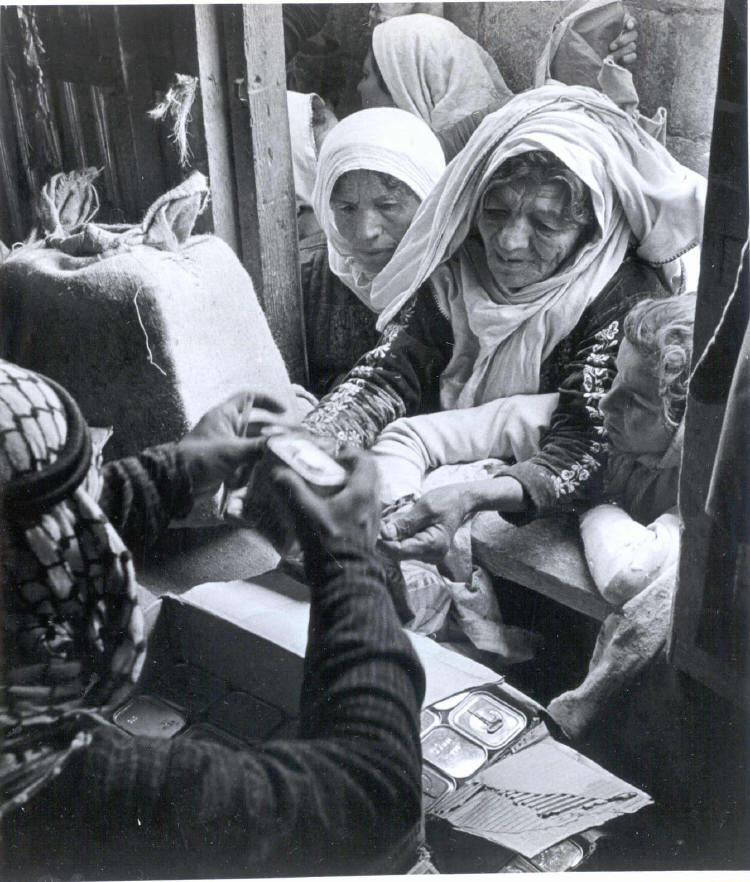 - al-Jalazoun R.C. - مخيم الجلزون, Ramallah: Distribution of food in the camp in 1950