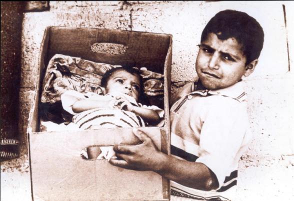 - Palestinian children in a refugee camp.This pic was scanned from the book (Palestinians) by the historian Elias Sanbar, post Nakba