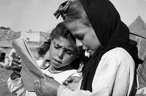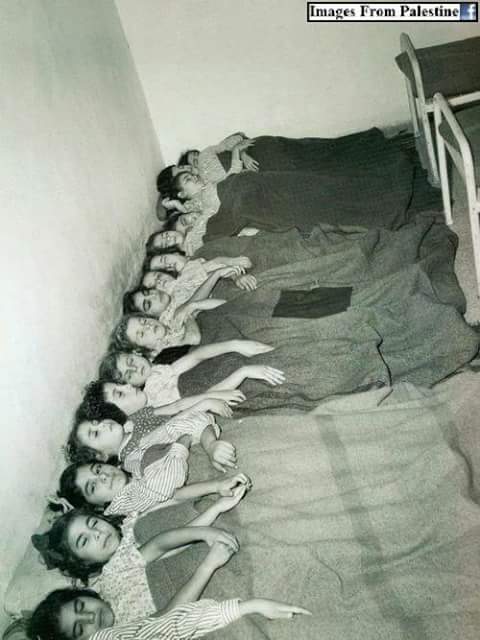 - Palestinian girls studying in a refugee camp around Nakba, soon after Nakba