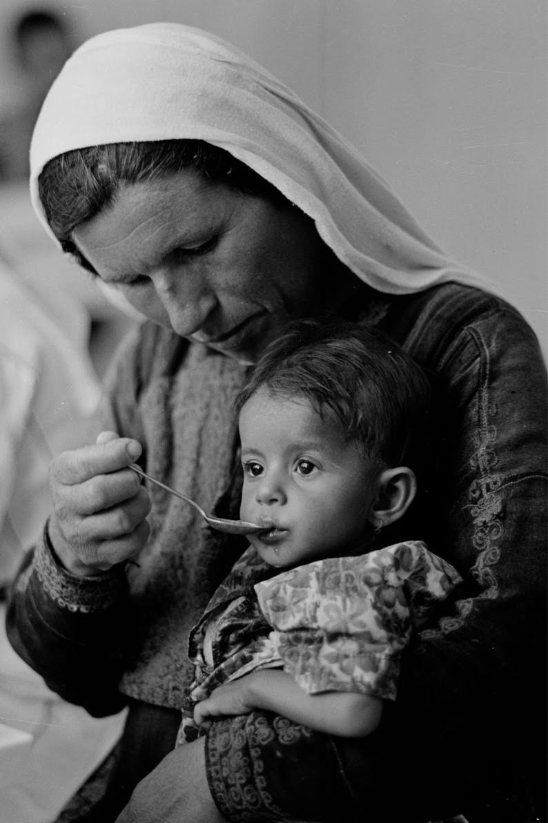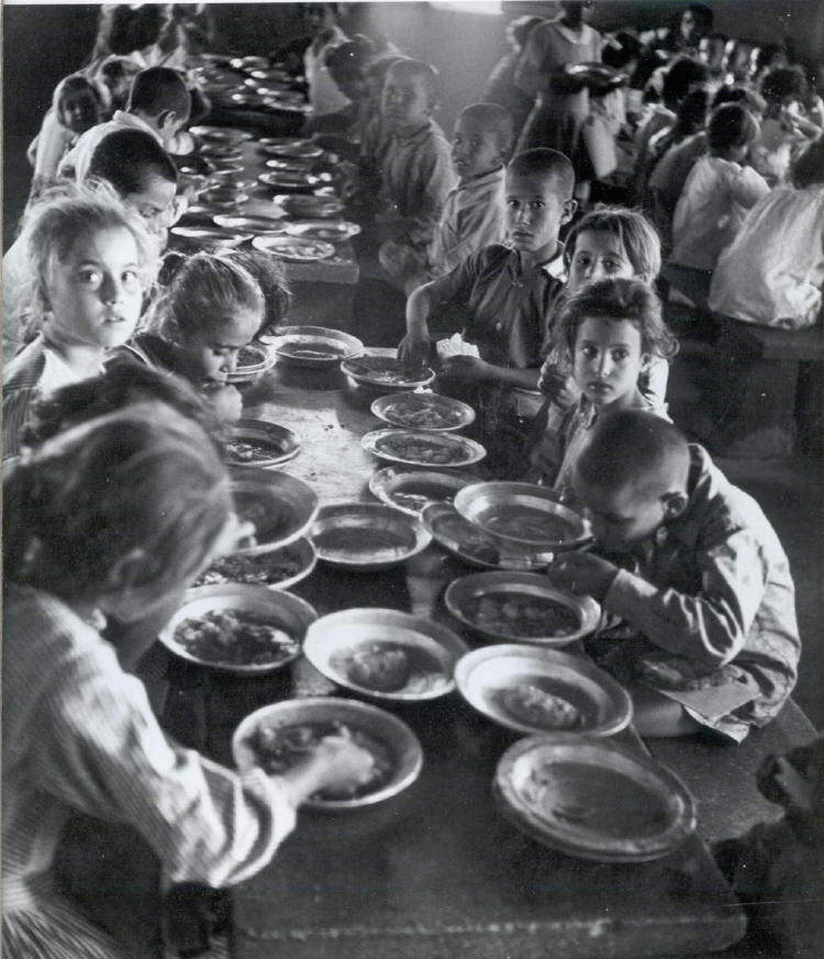 - Palestinian refugee children waiting for milk distribution in refugee camps, 1949 outside Palestine.