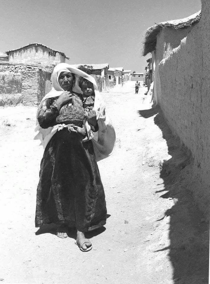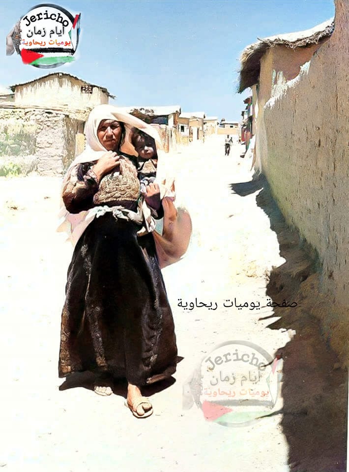 Posted by ابن عنابه - 'Ayn al-Sultan R.C. - مخيّم عين السلطان, Jericho: مواطنة تحمل طفل داخل مخيم عين السلطان في مدينة اريحا عام 1969